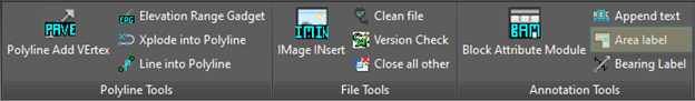 • The ALIBI command prompts users to click inside a closed area, then to click again for an area label.  The area label defaults to a font height of 2 and runs out 3 decimal places.
